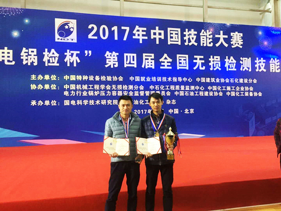 公司2017年榮獲“國電鍋檢杯”第四屆全國無損檢測技能競賽全體優(yōu)勝獎和個人賽優(yōu)勝獎。